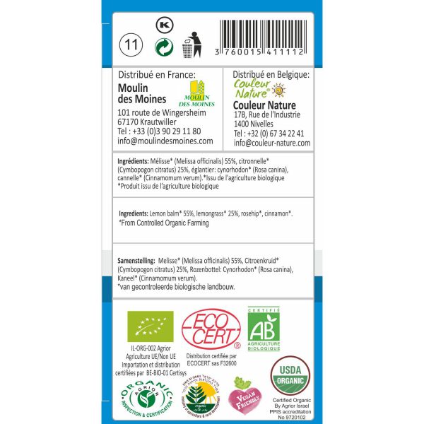 Lemon Balm & Lemongrass organic herbal tea for relaxation & digestion