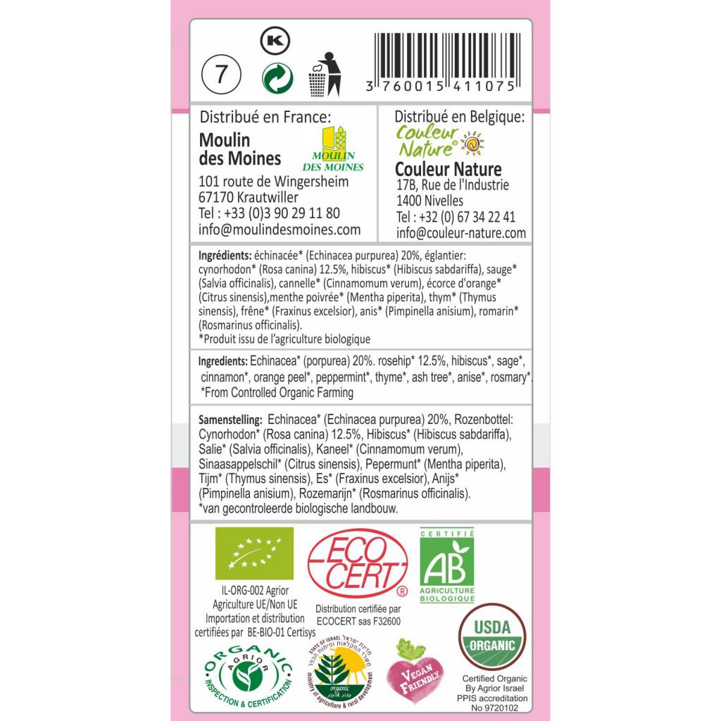 Herbal tea for cold, flu and cough with Echinacea (immune support tea)